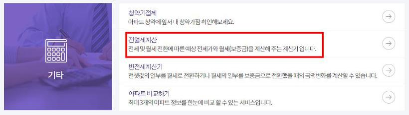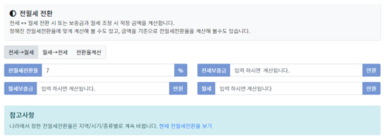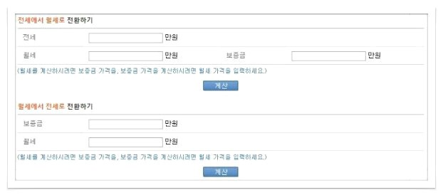 전세나 월세 상호 간 전환할 때 필요한 전월세 계산기가 나올 거예요.