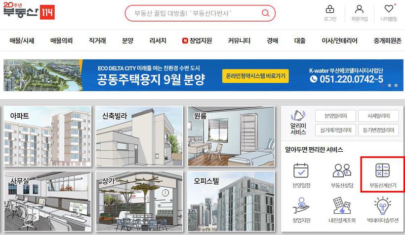 우측에 제가 따로 표시를 해둔 부분의 부동산 계산기를 클릭을